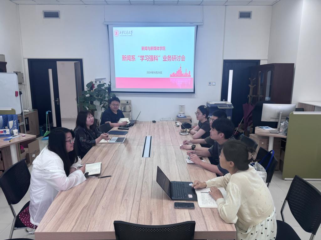 6月26日下午,新闻系组织召开第二次“学习强科”业务研讨活动。活动由新闻系党支部书记李巨星副教授主持,系主任徐婧副教授领学、青年教师刘丹助理教授对话分享。新闻系师生参加学习。