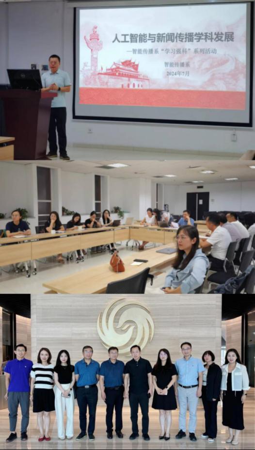 智能传播系深入学习习近平总书记关于人工智能相关论述,学习世界人工智能大会前沿报告,围绕人工智能与新闻传播学科发展开展“学习强科”业务研讨。在理论学习的基础上,系所骨干教师跟随学院调研团队,先后赴人民网AI展演中心、央视网何以文明沉浸式新业态项目、凤凰卫视集团凤凰数字科技等单位调研,参观“VR+文旅”沉浸展“胡夫地平线”,感受交互式空间媒介平台建设。智能传播系将利用研究方向优势,从人才培养、实践平台、师资队伍、教材出版等一系列工作入手,支撑学院建设具有交叉学科特色、服务国家战略的智能传播模块,提升学院在智能传播领域的教学、科研和社会服务整体水平。