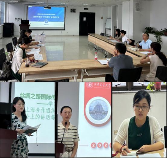 国际传播系以“丝绸之路国际传播能力建设的时代需求”为主题,学习“习近平总书记在‘上海合作组织+’阿斯塔纳峰会上的讲话”等重要论述,研讨当前新形式下总书记对“一带一路”的理念、目标与方法等一系列重大问题的系统深入论述;以“传承弘扬西迁精神、砥砺奋进勇担重任”为题,立足西迁精神对学习发展、城市品牌建设、高校思想文化建设和文化自信的独特价值,挖掘西迁精神的时代内涵和当代价值;系统梳理中国外文局2015-2023年9年时间里连续发布的年度“对外传播十大优秀案例”,总结发展趋势,为国际传播理论发展与学术研究提供实践参考与方法指引。