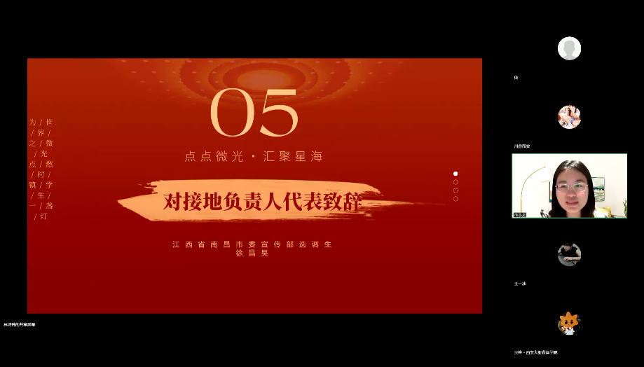 朱文轩代表学校团委社会实践指导中心,建议每一位志愿者都要以高度的责任心对待自己负责的学生,并表示社会实践指导中心会全力协助解决支教活动开展过程中遇到的困难。徐昌昊作为对接地负责人代表,认为支教在很大程度上解决了村镇地区教育资源短缺的问题,希望学生们能通过此次微光支教度过一个收获满满的假期。最后,李媛媛重点部署了第八期微光公益支教的宣传工作,建议充分挖掘支教过程中的闪光点,对外讲好微光故事,更好地传递出志愿服务、公益支教的精神。