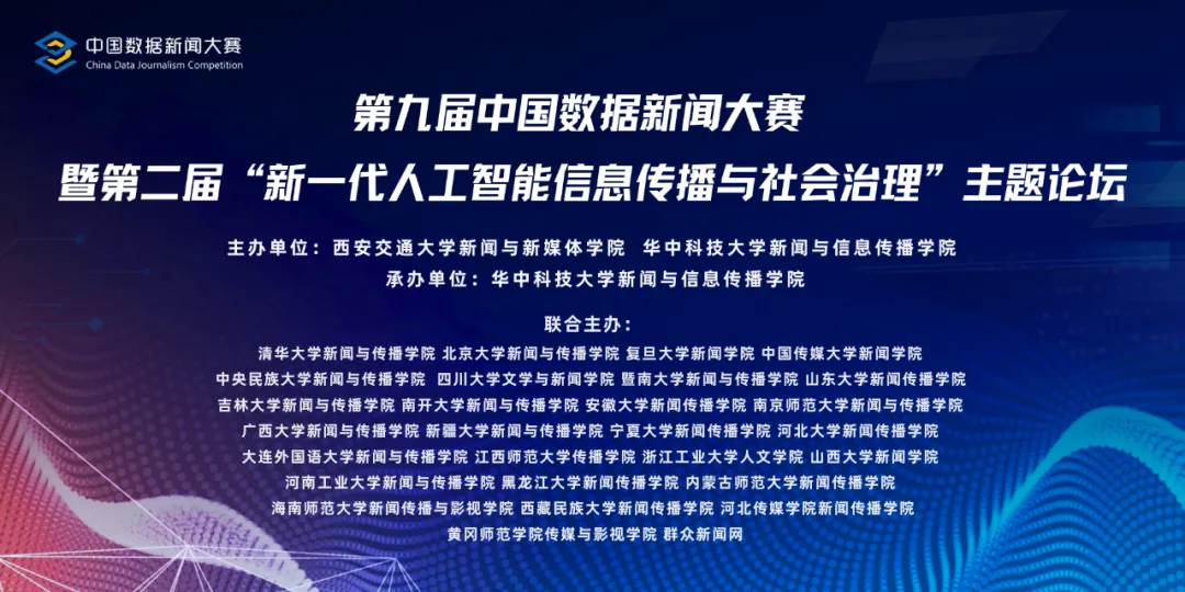 、中国人民大学、四川大学、南京大学、中国社会科学院大学、武汉大学、暨南大学、香港浸会大学等高校,业界参赛队伍主要来自新京报社、财联社、新浪网、内蒙古日报社等单位。