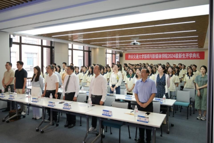 新时代不负韶华,新征程再建新功。典礼最后,全体师生共同合唱校歌并合影留念。相信2024级全体新生定将传承新媒体学院“服务国家和社会需求”的办学理念,展现交大学子“精勤求学”的精神风貌,接续爱国主义,传承西迁精神,为党和国家的新闻传播事业贡献青春力量。