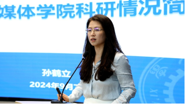孙鹤立副院长从空间媒介与智能计算、数字新闻学、智能传播等五大方向介绍学院科研情况。孙院长强调,学院科研平台覆盖面广,项目数量多,科研经费居学科前列,具备充分的科研潜力。她希望同学们大胆尝试,与学院一同致力于开辟新闻传播学研究新赛道,引领学科发展新范式,打造具有“工字牌”特色的新闻传播科研平台。