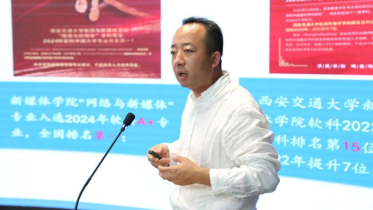 张宏邦副院长从专业优势、教学成果、师资队伍、业界合作四个方面介绍学院教学工作。他表示,2024年,学院“网络与新媒体”专业全国排名第一的亮眼成绩来源于“以赛促教、以赛促学”的良好学术氛围和“校企协同”育人机制。通过举办学术论坛、搭建媒体矩阵、建设产学基地等多种渠道,学院不断根据社会需求灵活调整课程教学方案,让大家充分感受学院学科教学的丰富多彩。