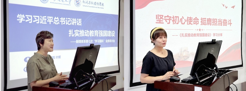 9月30日,新媒体系组织召开第七次“学习强科”业务研讨活动。本次活动由新媒体系党支部书记牛耀红副教授主持,叶妮副教授领学习近平总书记“切实推进教育强国建设思想”系列论述,赫中华副教授进行“坚守初心使命,挺膺担当奋斗”的分享,院长汪文斌,院长助理、办公室主任范晓莹,新媒体系全体师生参与研讨。牛耀红书记就“教育强国”背景及其对本学科发展的重要意义进行了深入阐释。