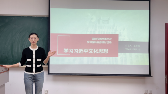 10月21日,国际传播系组织召开第七次“学习强科”业务研讨活动。本次活动由国际传播系助理教授达雅楠主持,助理教授王含阳领学有关习近平文化思想相关论述,副教授王威力围绕“文化自信和文化软实力”进行分享,国际传播系全体师生参与研讨。本次“学习强科”活动旨在深入理解并贯彻习近平文化思想,为做好新时代国际传播研究工作和智能时代下新闻传播学科建设提供理论指导和行动指南。