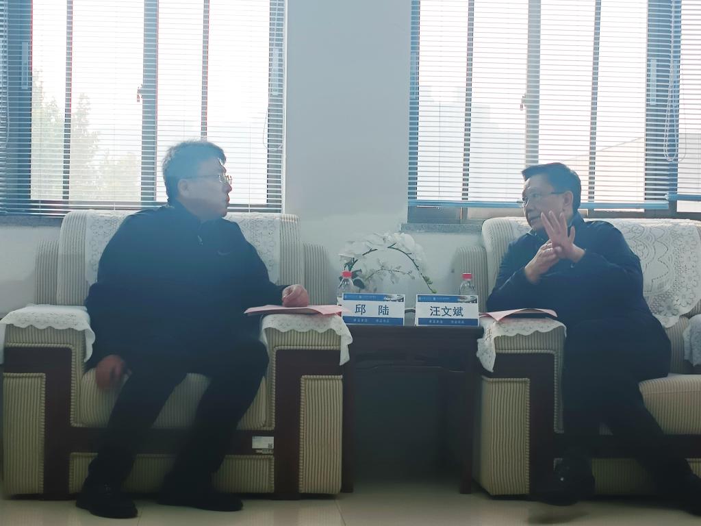 邱陆委员(左)与汪文斌(右)院长洽谈