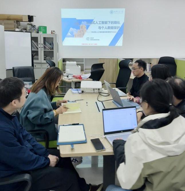 朱利平老师以“生成式人工智能下的隐私与个人数据保护”这一前沿话题为切入点,带领系所深入学习《生成式人工智能服务管理暂行办法》,从政策出台背景、核心内容、研究选题三个层面进行了分享。朱利平首先介绍了全球AI浪潮带来的潜在风险与挑战,如版权纠纷、虚假信息泛滥以及数据隐私问题,并通过案例呈现了AI在实际应用中可能对个人隐私、企业商业秘密和国家数据安全造成的威胁。在此背景下,《生成式人工智能服务管理暂行办法》于2023年7月10日由国家网信办联合国家发展改革委、教育部、科技部等七部门联合公布,并自2023年8月15日起施行。《办法》提出国家坚持发展和安全并重、促进创新和依法治理相结合的原则,采取有效措施鼓励生成式人工智能创新发展,对生成式人工智能服务实行包容审慎和分类分级监管,规定生成式人工智能技术不得侵害他人肖像权,图片、视频等人工智能技术生成内容应进行标识。朱利平详细介绍了数据处理规范、内容生产规范、服务运营规范等《办法》核心内容,并建议未来可以围绕隐私与个人信息风险扩散、风险治理及数据传播心理与行为等领域拓展研究方向,回应国家政策需要,助力智能传播学科建设优化。