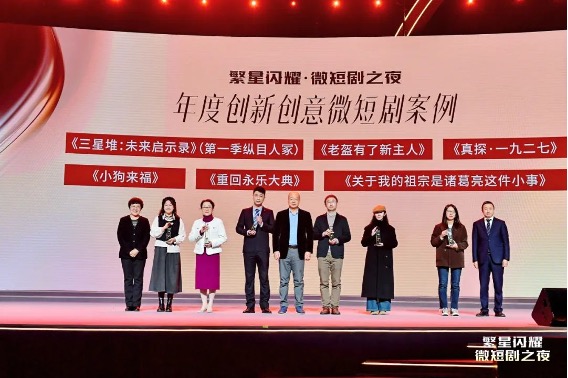 《三星堆:未来启示录》(第一季纵目人冢)、《老盔有了新主人》《重回永乐大典》《真探·一九二七》《小狗来福》《关于我的祖宗是诸葛亮这件小事》6个剧目获推年度创新创意微短剧案例。