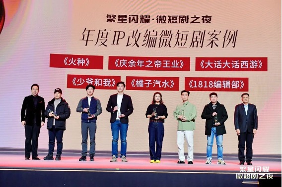 《火种》《庆余年之帝王业》《大话大话西游》《少爷和我》《橘子汽水》《1818编辑部》6个剧目获推年度IP改编微短剧案例。