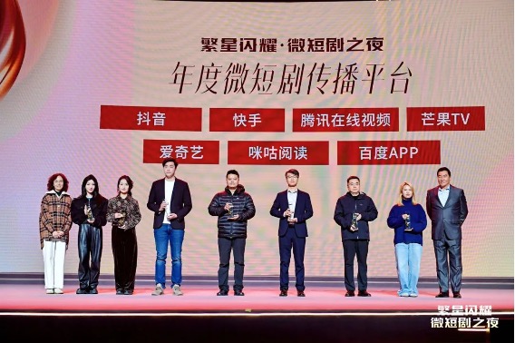 腾讯在线视频、芒果TV、抖音、快手、爱奇艺、咪咕阅读、百度APP共7个平台获推年度微短剧传播平台。