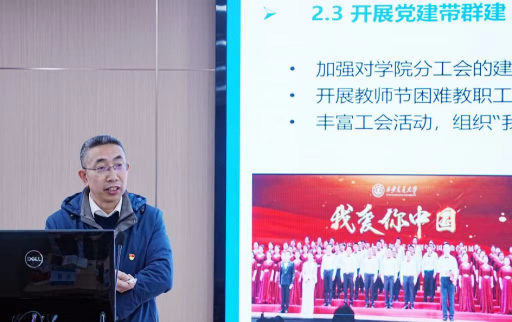 党委副书记吴锋回顾一年来学生工作的亮点。2024年度硕士毕业生连续四年就业率达100%、荣获“就业创业工作先进集体”称号、博士生荣获“优秀研究生标兵”称号等。他表示,学院在面临学生规模逐步扩大、国际化特征显著等新形势,通过规范化管理和创新性举措,努力为学生提供全方位的支持与服务,助力他们全面发展。2025年,学生工作将积极探索创新路径,努力为培养更多优秀人才贡献力量。