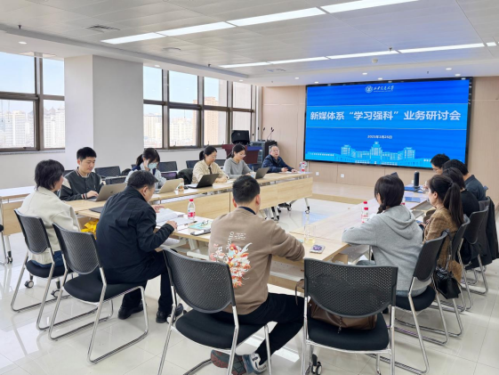 院长汪文斌教授,新媒体系师生参与研讨,系主任陈强教授主持。