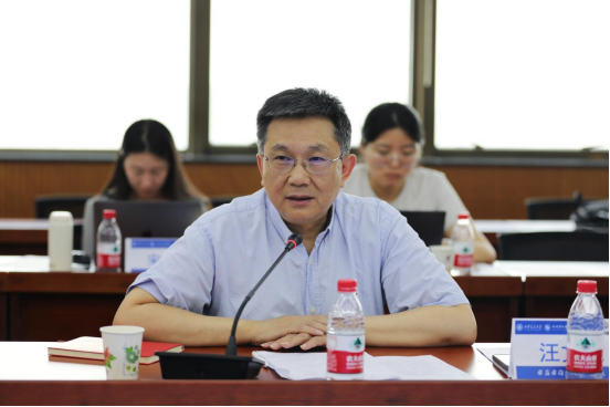 院长汪文斌、学院领导、系所主任、全体教职工及博士研究生参与学习研讨。活动由汪文斌主持。