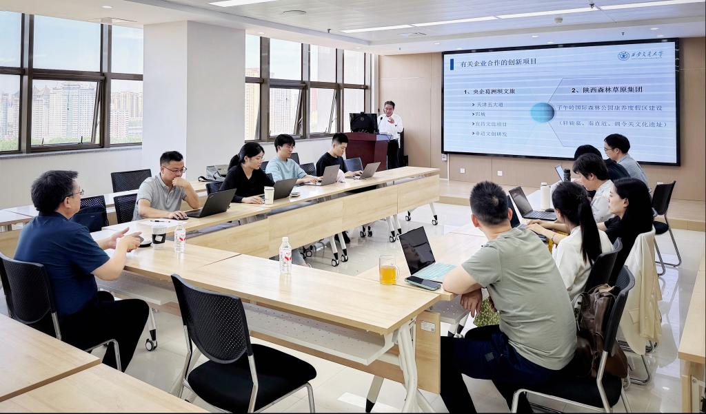 汪文斌指出,文旅融合是新时代推动文化产业高质量发展的重要路径,也是新媒体学院服务国家战略的重要方向。他表示,陈共德曾任国家广播电影电视总局发展研究中心产业所所长、西安曲江文化产业投资集团公司党委书记等职,具备丰富的文旅融合与产教融合工作经验。学院师生要主动抓住文旅融合发展机遇,积极支持陈共德老师的文旅融合项目,组建成果转化型团队,打造具有影响力的产教融合平台,实现社会效益与经济效益的共赢。