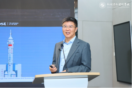 杨乘虎教授以《国家形象建构的文化内涵与媒介表达》为题,深入剖析了国家形象建构的文化内涵与媒介表达方式,强调了中国故事在媒介内容与文化表达中的重要性,以及企业形象与文化传播的紧密联系。同时,他围绕两个核心问题、三个深入维度,聚焦“纪录片 + 品牌”的创新生产策略,提出要着力实现品牌基因与选题内容的深度融合、推动品牌叙事从简单植入到有机共生的升级转变、构建全域联动的流量传播矩阵,以及打造“功能+情感+文化”三重价值体系。