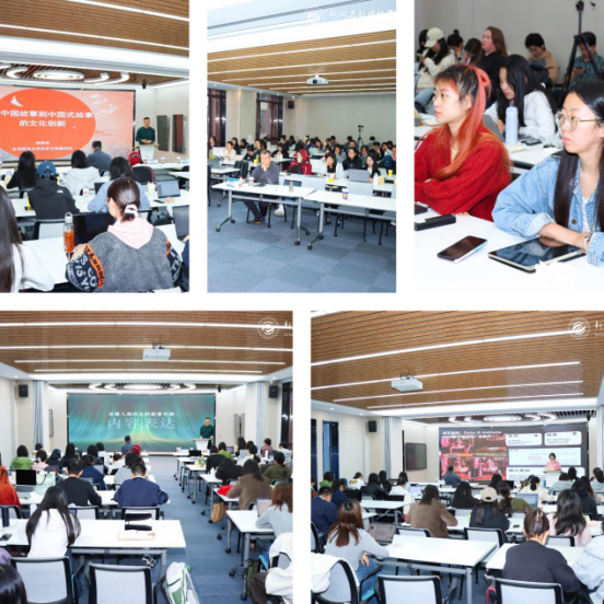 与中国对外书刊出版发行中心联合开设的“名企名家进课堂“系列课程《智能时代的品牌国际传播》第四次课在中国西部科技创新港顺利举办。本次课程主题为“影像视角下的中国企业海外形象传播内容策略”,邀请到北京师范大学艺术与传媒学院副院长杨乘虎、视觉中国副总裁兼总编辑张宗堂、广州探索视娱传媒有限公司总经理董芳芳三位学界与业界专家为新媒体学院全体硕士生、博士生授课,学院领军学者陈红兵教授出席课程,国际传播系主任刘婵君教授担任课程主持人。