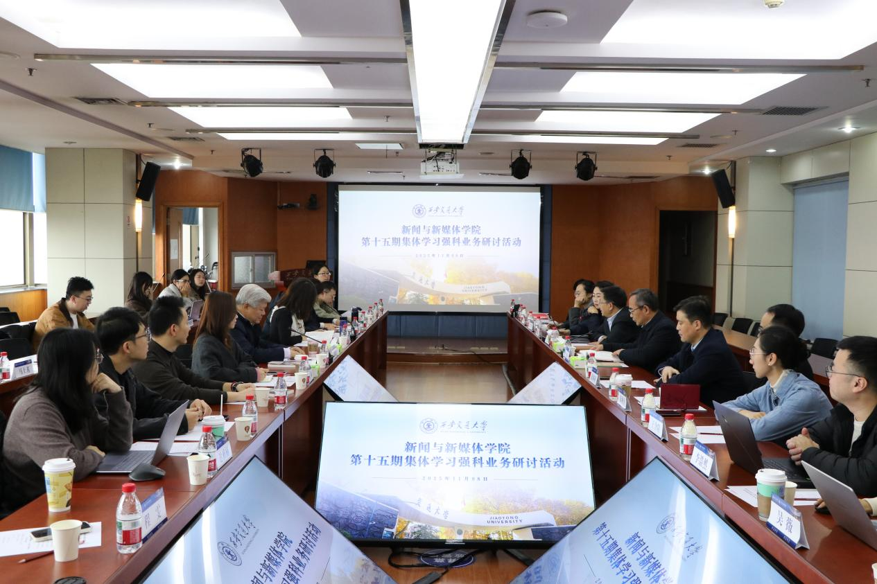 组织开展第十五期全院“学习强科”业务研讨活动。本次活动邀请到第十、十一、十二届全国政协委员,中国作家协会全国委员会名誉委员、韬奋基金会前理事长聂震宁老师,围绕“永远的韬奋精神——为什么写与怎样写”领学分享。西安交大党委常委、宣传部部长、统战部部长成进,新媒体学院领导班子、系(中心)主任、教职工及博士生参加学习。新媒体学院院长汪文斌主持活动。