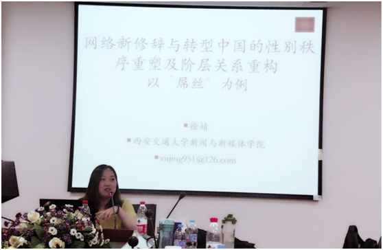 教师徐婧受邀参加6月13日晚的青年学者圆桌论坛。她围绕“网络新修辞与社会性别秩序、阶层关系重塑”这一主题,讨论了当前中国互联网中涌现出的众多网络流行语其中所蕴含的社会性别秩序与转型期中国社会阶层关系。徐婧博士以“屌丝”为例,从该词产生至今的语义流转、该词与当前社会语境的勾连以及新媒体在形成网络群体的新身份认同中发挥的作用几个方面展开论述。最后,徐婧博士也对该论文的结论进行了再批判与再反思。