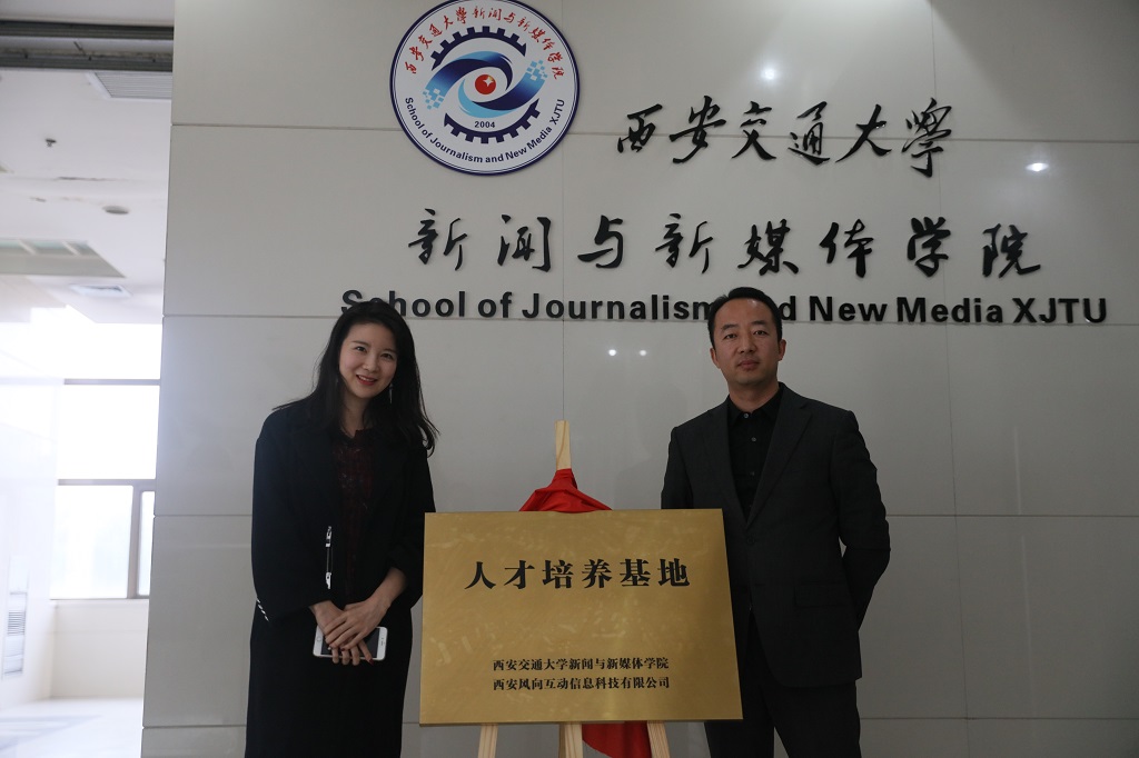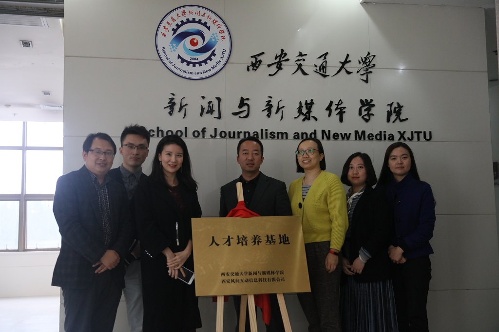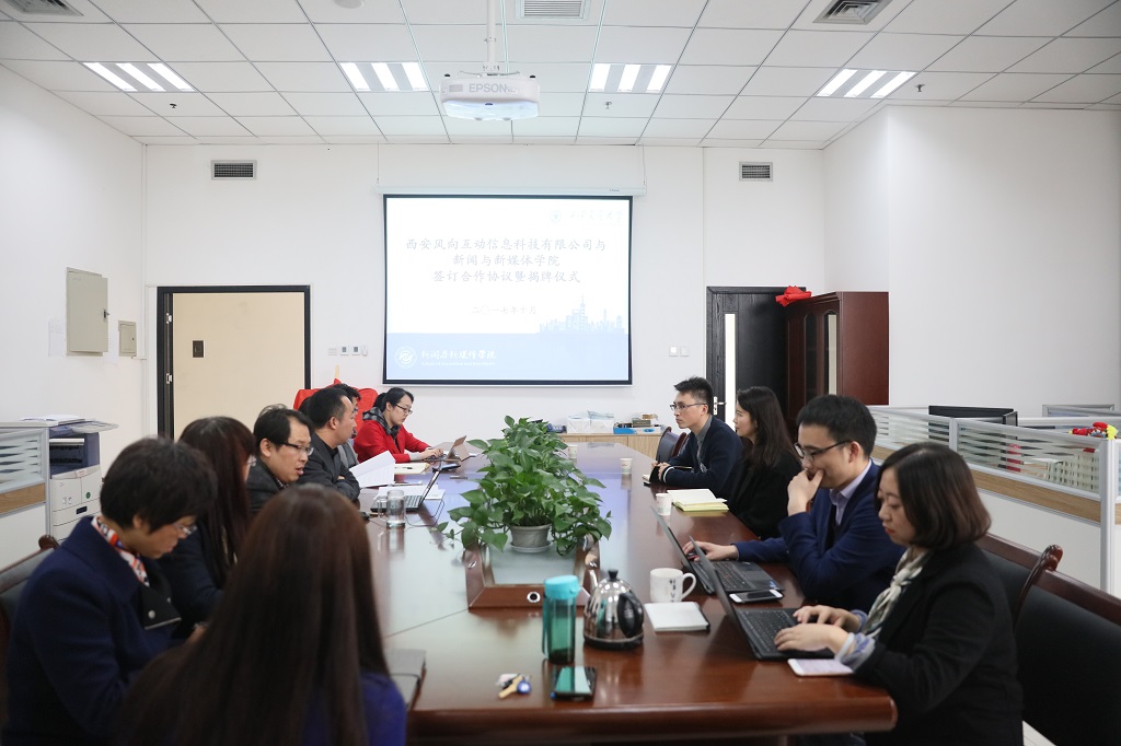 10月20日下午,西安风向互动信息科技有限公司运营负责人赵菲、项目经理刘汉辉到访新媒体学院,与新媒体学院洽谈合作事宜。院长助理张宏邦和运营负责人赵菲共同为共建人才培养基地与实践培训基地签署合作协议并揭牌,至此双方的合作正式启动。新媒体学院陈积银教授、陈强副教授、徐春英老师、刘斌老师、张立老师、徐婧老师、蒙胜军老师、宋欢迎老师参加座谈,会议由院长助理张宏邦主持。