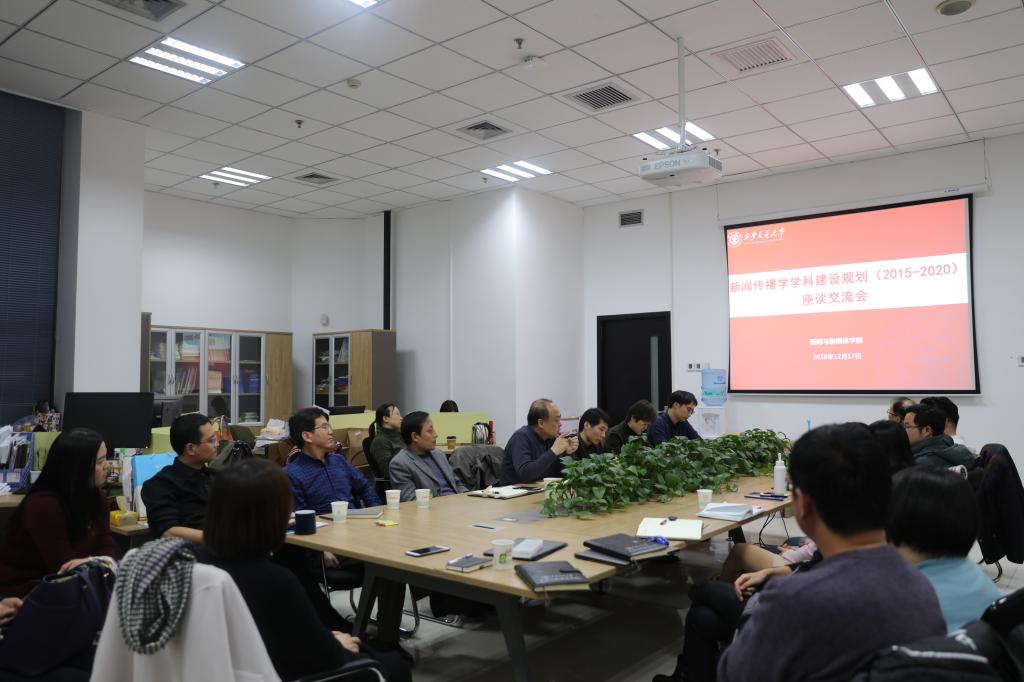 12月17日下午,新闻传播学科发展座谈会在主楼E座412召开,人文学院党委书记马晓彬,院长李黎明,党委副书记王劲,副院长张勇、王伟、张顺,院办主任张科出席会议,新媒体学院院长李明德及全体教师参加座谈。