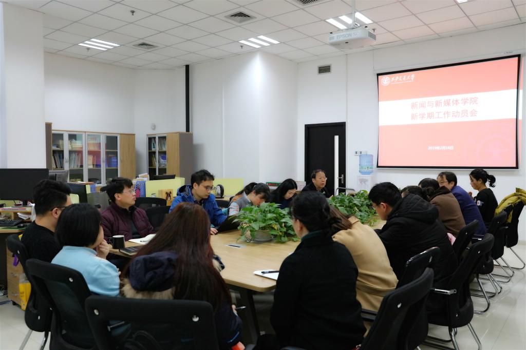 2月16日上午,新媒体学院举行新学期工作动员会,会议由院长助理陈积银教授主持,学院全体教师参加会议。