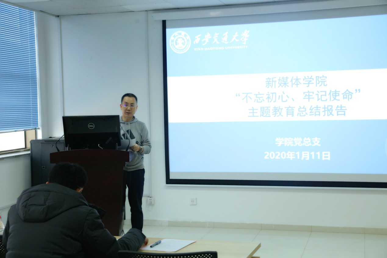 随后,韩博副书记代表学院党总支做“不忘初心、牢记使命”工作报告,从党总支基本情况、活动组织开展情况、工作做法和成效三方面具体展开。目前学院共有党员84人,教工中党员占比88%,研究生中党员占比50%,另有1名教工是民主党派人士,党总支下设4个党支部,其中教工支部1个。韩书记表示,学院高度重视此次主题教育学习活动,成立了以李院长为组长的工作小组,对发现的问题提出相应整改措施,取得了阶段性成效。