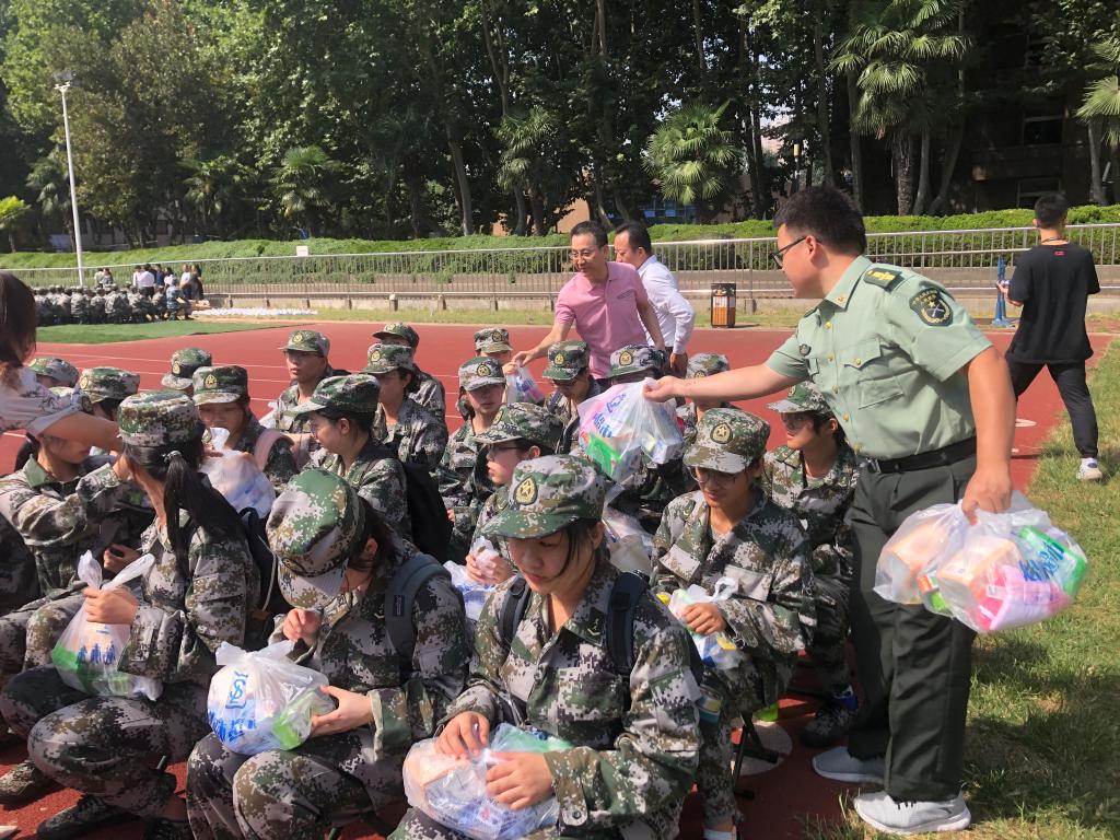 的慰问物资已经摆放到指定的慰问地点。10点半,集体慰问环节结束,文科试验班002的学生在教官的带领下到达学院的指定慰问地点。待新生到齐并就坐后,韩博副书记对文科试验班002的学生表示了关心和对新生的殷切期望。随后四位老师将学院为新生准备的物资亲手交到每一位同学的手中。