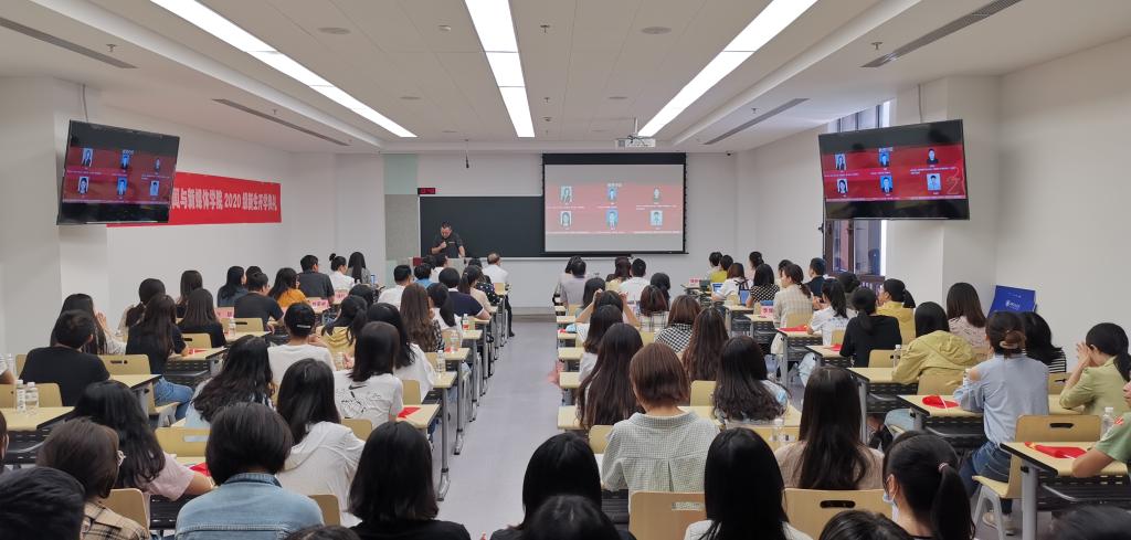,并鼓励同学们入学后志存高远、瞄准目标,严格要求自己,充实地过好每一天。孙鹤立副院长以学院目前正在展开的“科创月”系列活动为契机,向大家介绍了学院最新科研成果及获奖情况,她表示新媒体学院高速发展的背后离不开全体老师、同学的共同努力,期待新生们利用好学校、学院提供的丰富资源,尽快投入到科研学习生活中。