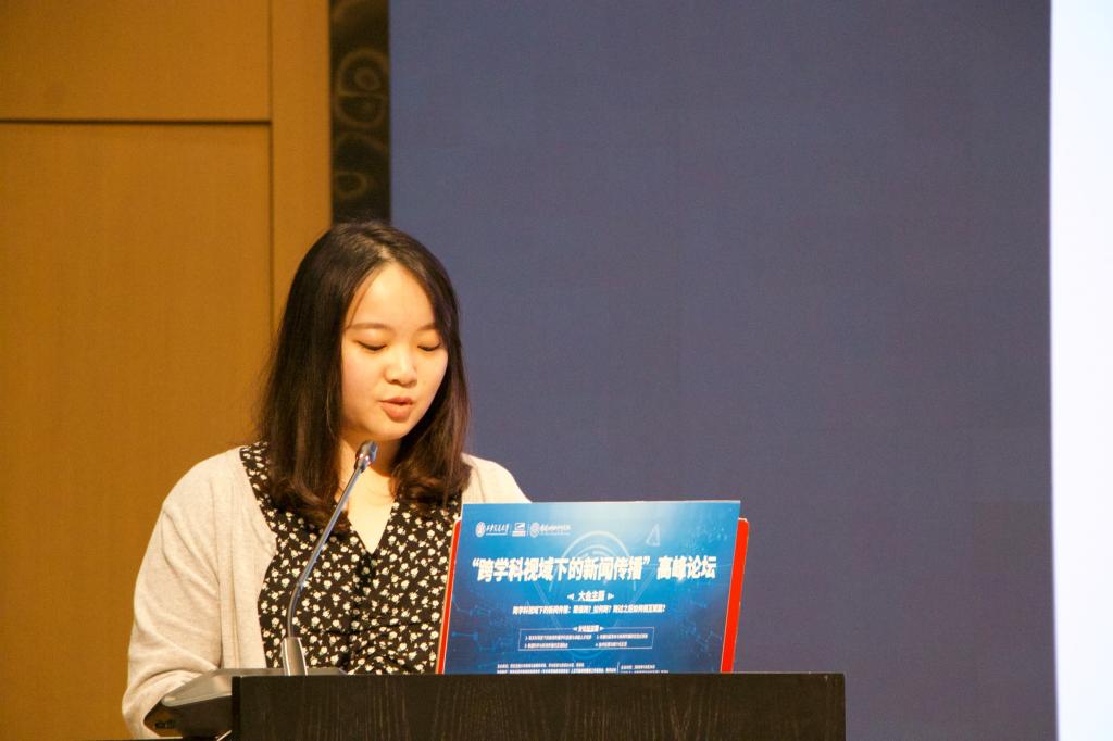 本科生郑朔儿报告的题目是《媒介化生活:社会信任危机与挑战》。她认为媒介技术解构了人与人之间交流的元素,带来“缺场交往”,导致媒介化生活的“欺骗性”,受众对媒介内容的不信任转移到对媒介本身的不信任。新的媒介技术是一把双刃剑,可能解决信任危机,也可能会放大信任危机。