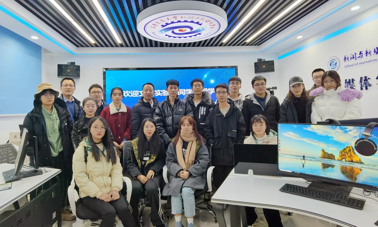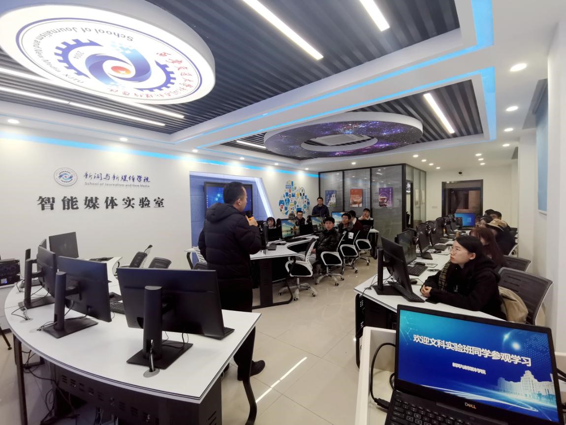 智能媒体实验室参观学习,新媒体学院副院长张宏邦、实验室教师张收鹏出席,文试02班班主任李巨星主持参观活动。