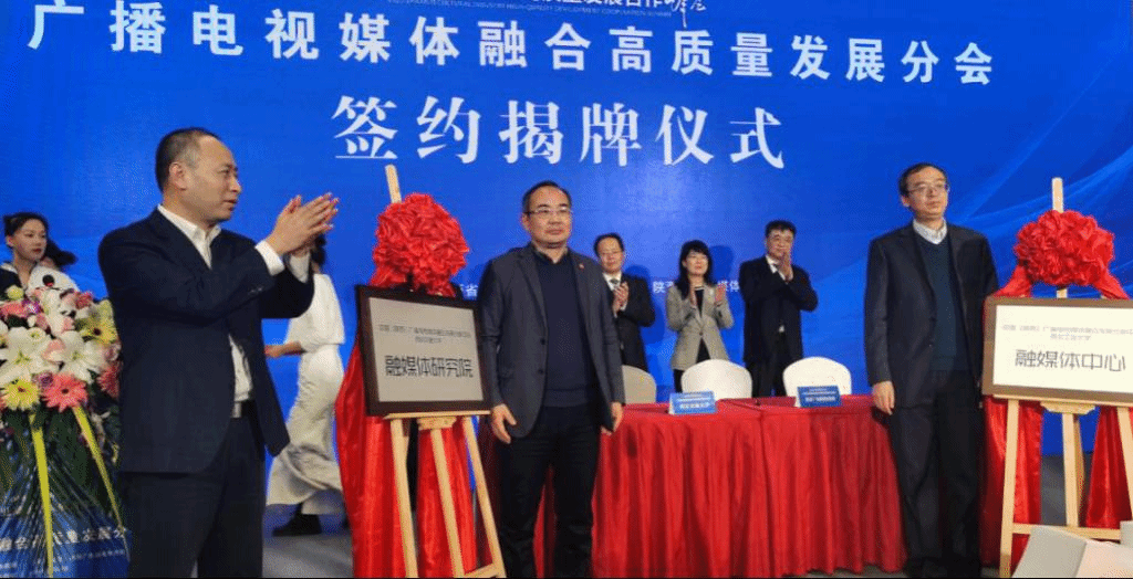 将充分发挥媒体智库优势,以“融媒体研究院”这一重要平台为依托,在媒体深度融合的理论研究、技术应用、成果转化、人才培养等方面积极合作,共同破解全媒体传播体系建设中的各种难题,为陕西广电融媒体集团深度融合发展提供有力的智力支持与先导性服务。