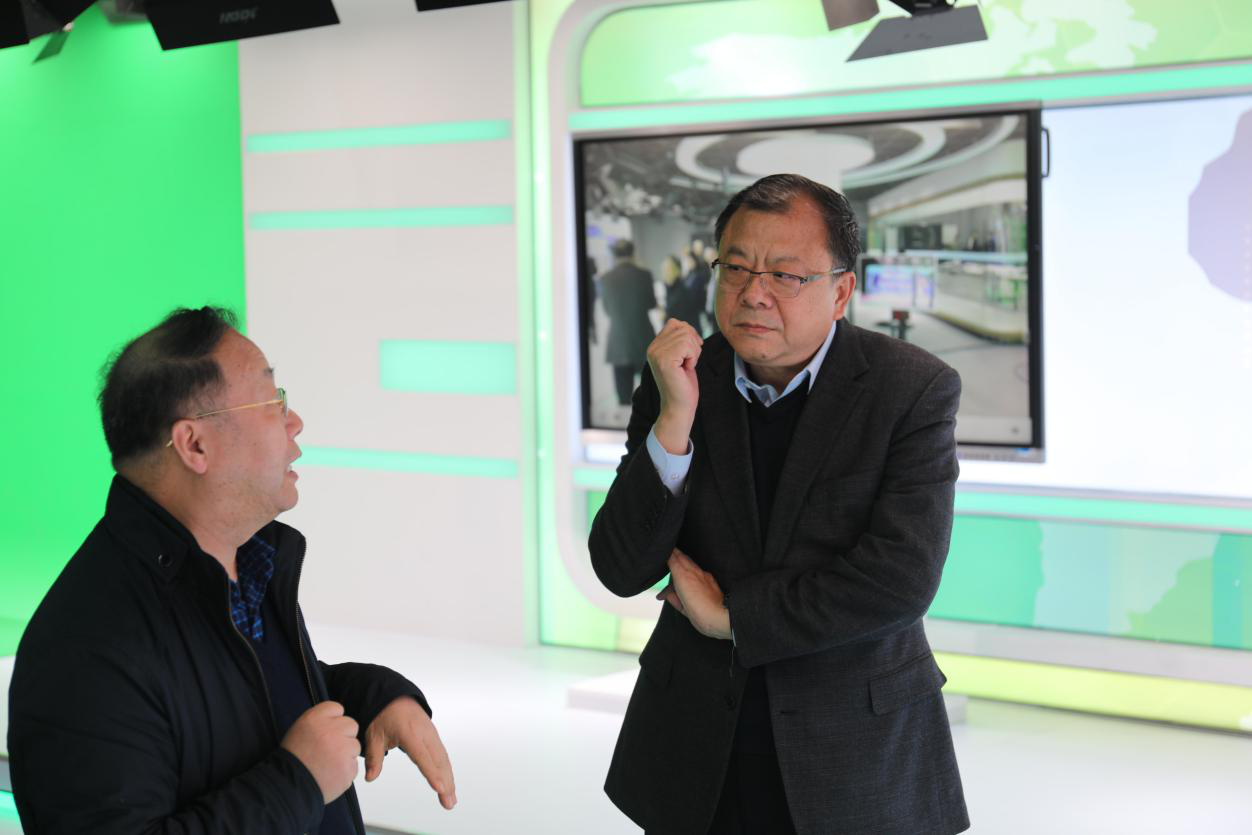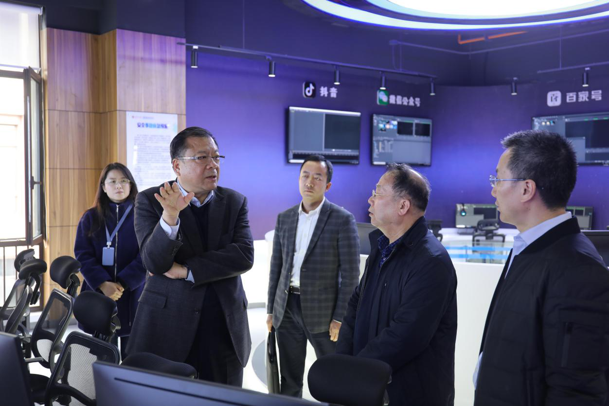 在融媒体平台,卢建军仔细听取了平台建设情况,他指出,学校融媒体平台在建设发展中要深入学习贯彻习近平总书记关于媒体融合发展的重要讲话精神,进一步提高政治站位,统一思想认识,抢抓改革机遇,突出学科优势,加快推进媒体深度融合,全力打造“中央厨房”,实现媒体由“相加”向“相融”转变,更好地发挥主流媒体的传播力、引导力、影响力、公信力,形成网上网下同心圆。