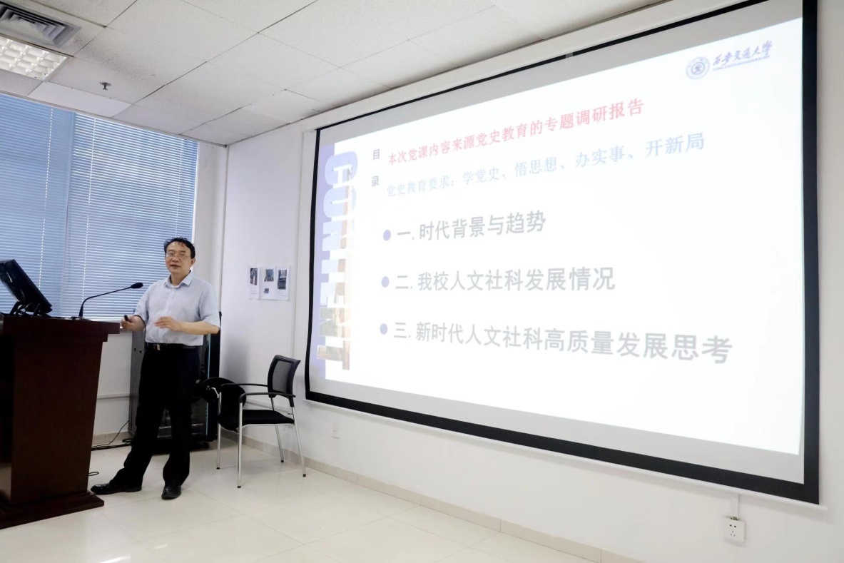 他进一步指出,本次党课内容来源于党史教育专题调研报告,目前,党史教育要求学党史、悟思想、办实事、开新局。因此今天既要讲党课,也要办实事,所以,我们今天的活动更是一次调研会,希望能够发现新媒体学院学科发展面临的瓶颈问题,并指出解决思路。