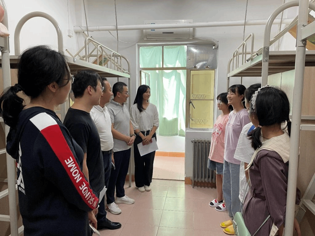 相关领导和老师前往本科及研究生新生宿舍进行慰问,党总支副书记韩博老师,教学副院长张宏邦老师以及2021级新生班主任杨帆老师,教务员马樱支老师一同来到2021级本科新生宿舍,看望文试2102班新生同学,崇实书院院务副主任段继超老师、新生辅导员穆芊润老师陪同慰问。随后韩博老师、张宏邦老师和学院专职辅导员孙艳婷老师前往了研究生新生宿舍,同研究生新生从日常生活和学习等方面进行了亲切交谈。