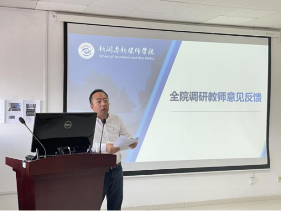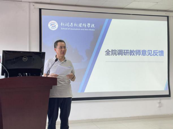 会上,李明德院长向全院教职工做整体意见反馈。他谈到,调研结果显示,学院教师普遍反映学院氛围宽松,工作充实,青年教师感受到科研压力的同时,也普遍能获得了足够的成长空间。在学院发展上,学科交叉特性逐渐显现,“工字牌”发展定位和学院特色继续凸显。