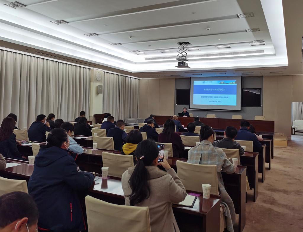 按照学校通知精神,为做好网络安全宣传工作,10月13日,学院党总支副书记韩博研究员应邀赴省政府办公厅作“数据安全挑战与应对”专题网络安全知识讲座,省政府办公厅副主任谢泱,省政务大数据服务中心副主任王根平、郭鹏,以及省政府办公厅机关处室、厅属单位共80余人参加。