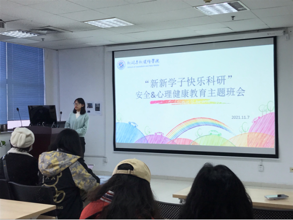 研究生辅导员孙艳婷于主E1104会议室面向21级新生开展“新新学子快乐科研”安全&心理健康教育主题班会。