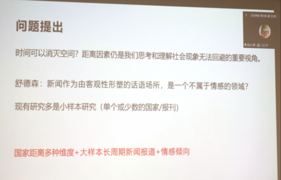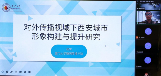 厦门大学新闻传播学院助理教授苏文发表了题为“对外传播视域下西安城市形象构建与提升研究”的精彩报告。他以《人民日报(海外版)》上2019年至2020年间9个新一线城市的报道来探讨西安城市的对外传播现状,研究发现西安在城市品牌对外传播的重要地位与发展潜力。同时,苏文也提出一些提升西安城市形象的建议与策略,他认为应在西安个性化形象塑造、采取能够塑造西安城市品牌的措施、增加与国内外的交流合作的报道等方面做出不断地探索。