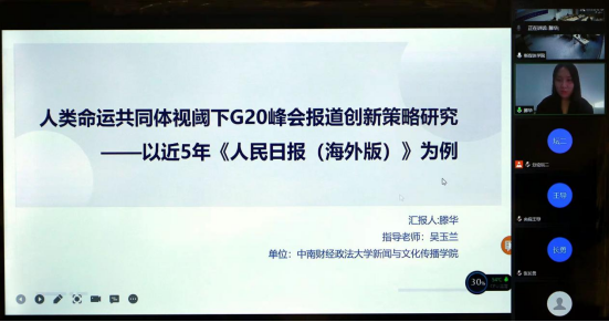 中南财经大学新闻与文化传播学院教授吴玉兰和研究生滕华带来了人类命运共同体视阈下G20峰会报道创新策略研究,以近5年《人民日报(海外版)》为例,构建出报道数量、报道体裁、消息来源、报道主题、报道倾向5个类目。此外,该研究还借助了NLPIR-Parser软件和微词云对样本进行话语策略与报道倾向分析。吴玉兰教授和滕华提出,G20峰会传递人类命运共同体理念要拓展多元议题,选择人情味框架,吸纳多方意见,选择多样体裁。