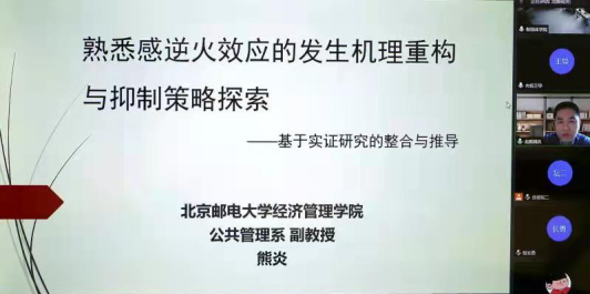 北京邮电大学经济管理学院副教授熊炎以生动案例的形式,分享的主题是“熟悉逆火效应的发生机理重构与抑制策略探索”的报告。在对熟悉逆火效应的表象和发生机理进行简要阐释后,熊炎又辨析阐述了斯宾诺莎模式与笛卡尔模式的机理和不足,并在此基础上提出熟悉感逆火效应的新发生机理。