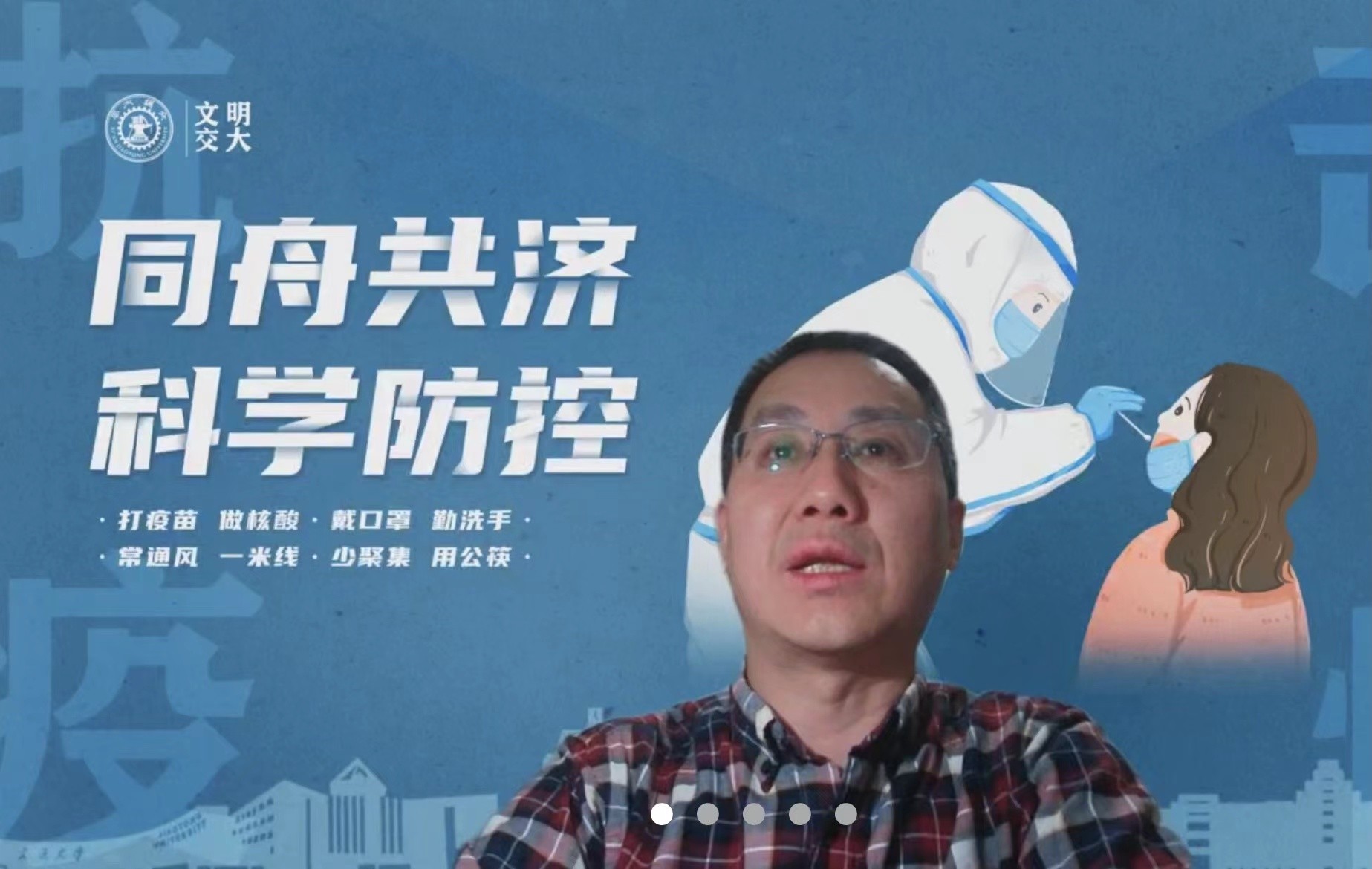 韩博副书记通报了近期西安疫情严峻局势,传达了卢建军书记、王树国校长对同学们的关心和当前的防疫要求。疫情防控压力日趋增大,需要全体师生齐心协力,共克时艰。他强调,疫情防控时期应严守学校师生“不见面”原则和“应检尽检,不漏一人”原则,在疫情防控紧要关头,党员干部要充分发挥模范带头作用,带头服务大局、做好防护、以身作则,坚决服从学校与学院的防疫安排,关键时刻发挥关键作用。他指出,在疫情防控紧要关头,党员干部要充分发挥模范带头作用,带头服务大局、做好防护、以身作则,坚决服从学校与学院的防疫安排,关键时刻发挥关键作用;他对张铁云、朱多刚两位老师挺身而出、赴港抗疫表示感谢,并赞扬了学院研究生积极报名参与到抗疫青年先锋队的行动。