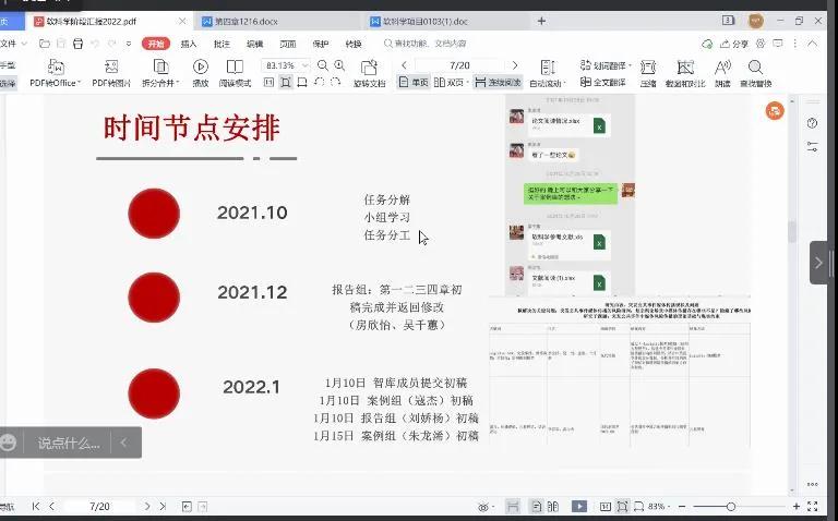1月10日晚,“明德门”2021-2022学年第十四次团队例会顺利进行。会上,人民网课题“复杂舆论场景中信息内容传播风控评估与构建研究”统筹人详细汇报了项目进展情况,并提出了年度报告的总体要求。子课题参与人分别就研究中的新情况、新问题、新想法同大家作了交流。老师肯定了项目组成员克服疫情期间面对面交流探讨、实地调研的困难,始终坚持学术研究不放松的积极进取精神,并提出下一步研究建议,要求课题组坚持理论联系实际,突出实践应用导向,在夯实理论基础的同时,强化案例验证,同时加强组内组外互动,推动项目研究有序进行。