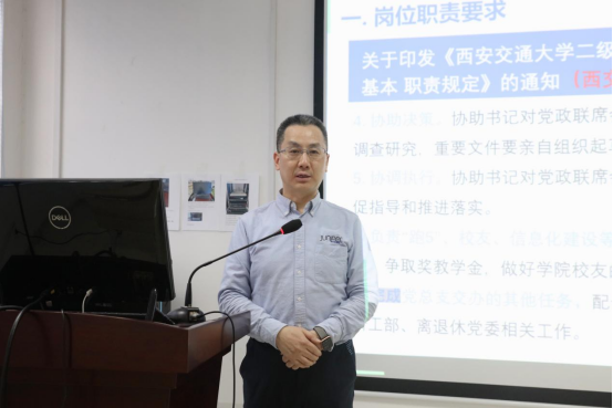 副院长孙鹤立代表学院领导班子汇报了2021年度整体工作情况,从班子思想政治建设、领导能力、工作实绩、党风廉政建设、作风建设五方面展开,对全年班子整体工作态度和工作实效做了汇报。