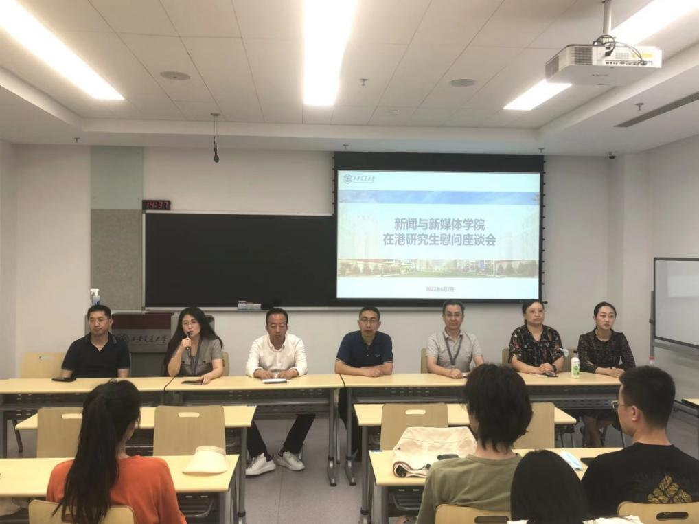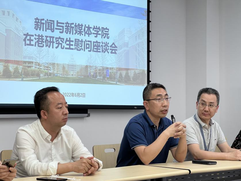 6月2日下午,新媒体学院在创新港召开研究生座谈会,亲切慰问在港研究生并送上端午节日福袋。院长兼党总支书记马忠,副书记韩博,副院长张宏邦、孙鹤立,院长助理张立、范晓莹,系主任吴锋、蒙胜军,以及部分行政教辅老师参加慰问。
