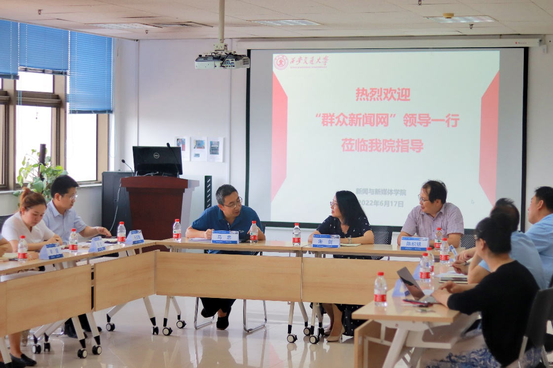 朱剑总编认为:西安交大新媒体学院近些年突飞猛进,特别是在舆情治理、媒体融合研究以及专业建设方面成就斐然,学院毕业生更是广受企事业单位认可。群众新闻网作为陕西日报社新媒体实践排头兵,正需要与新媒体学院在新媒体内容生产、产业布局和舆情服务等方面深度合作。