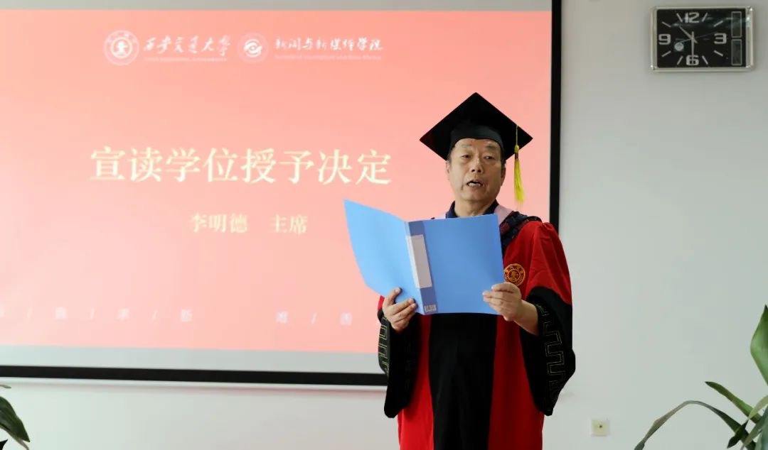 学院学位分委员会主席李明德宣读学校授予研究生毕业生硕士学位、本科生毕业生学士学位的决议,并公布优秀毕业生、优秀毕业生干部名单。