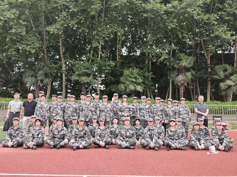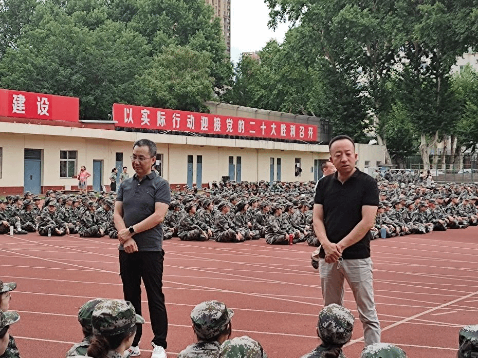 党总支副书记韩博、副院长张宏邦、新媒体2101班主任杨帆和研究生辅导员孙艳婷四位老师来到操场上对军训学生表示慰问。