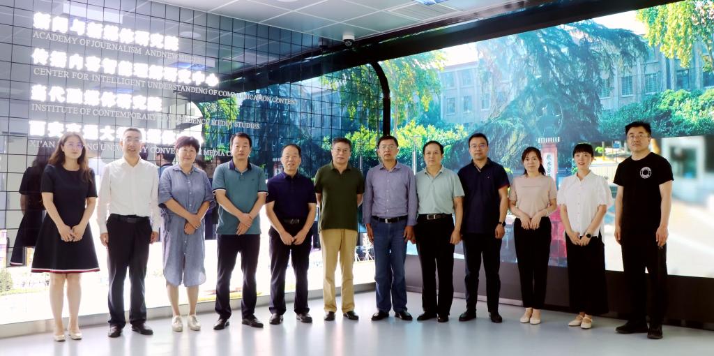 陕西高等学校专业设置与教学指导委员会人文与新闻传播类工作委员会主任陈洪海,副主任李明德、袁祖社、杜林渊,委员马德林、杨琳、何志龙、张西静、胡俊生、党子奇、李军、吴雁等专家,西安交大新媒体学院党政班子、系所主任参加会议,新媒体学院院长兼党总支书记马忠主持会议。