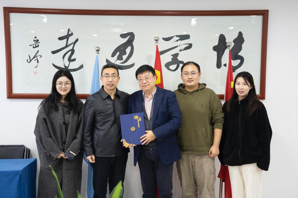 新媒体学院马忠院长为魏小立董事长颁发聘书